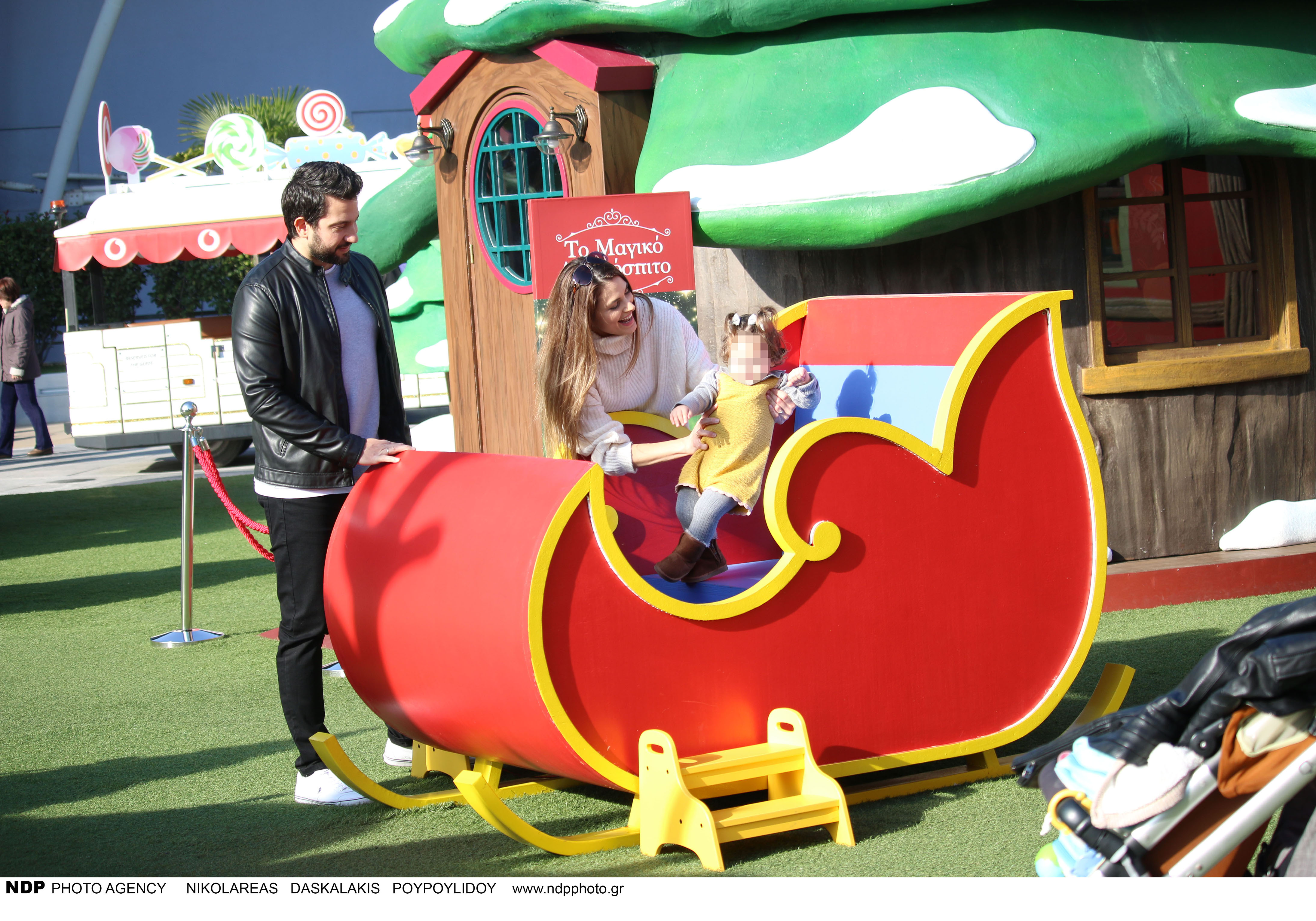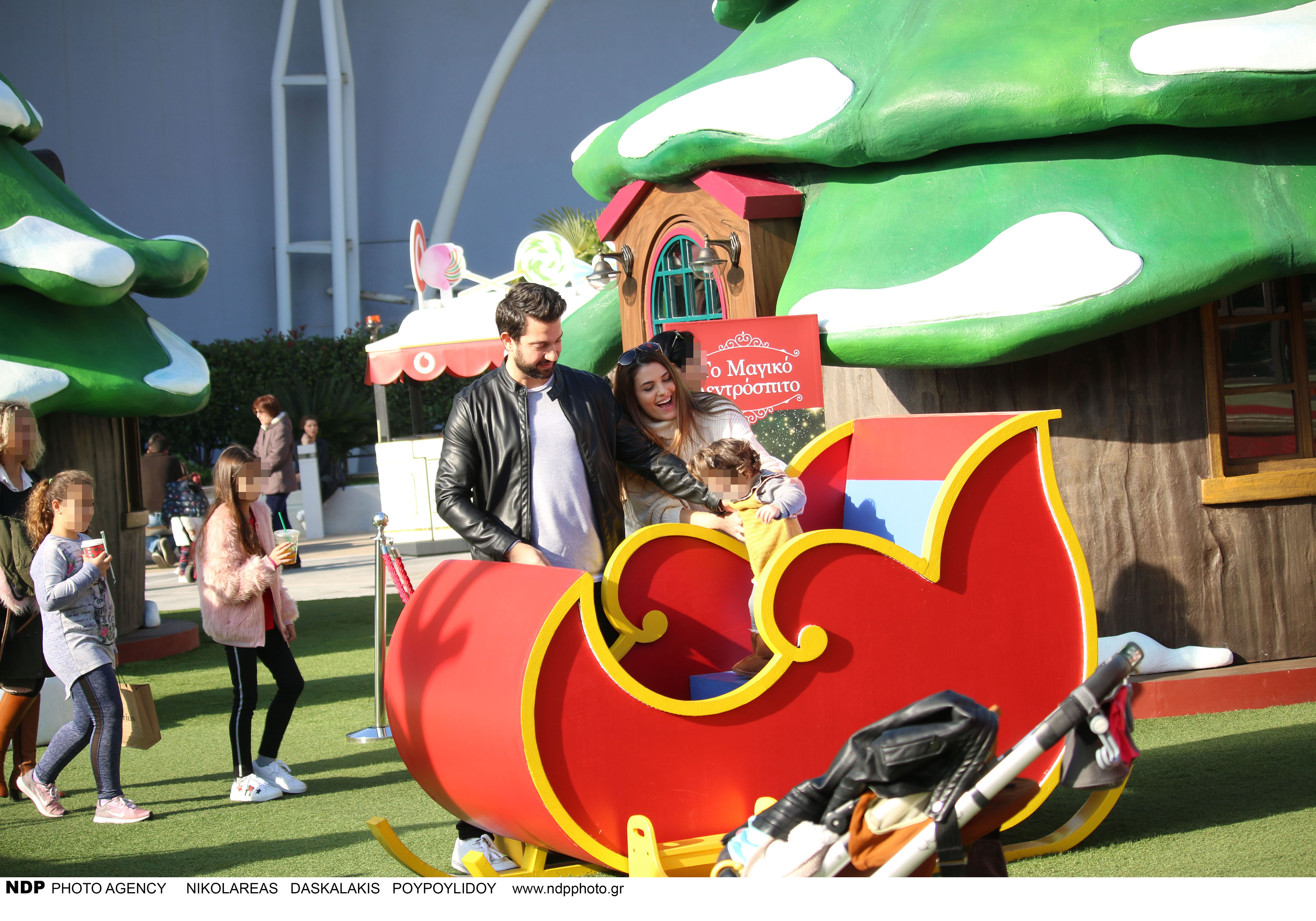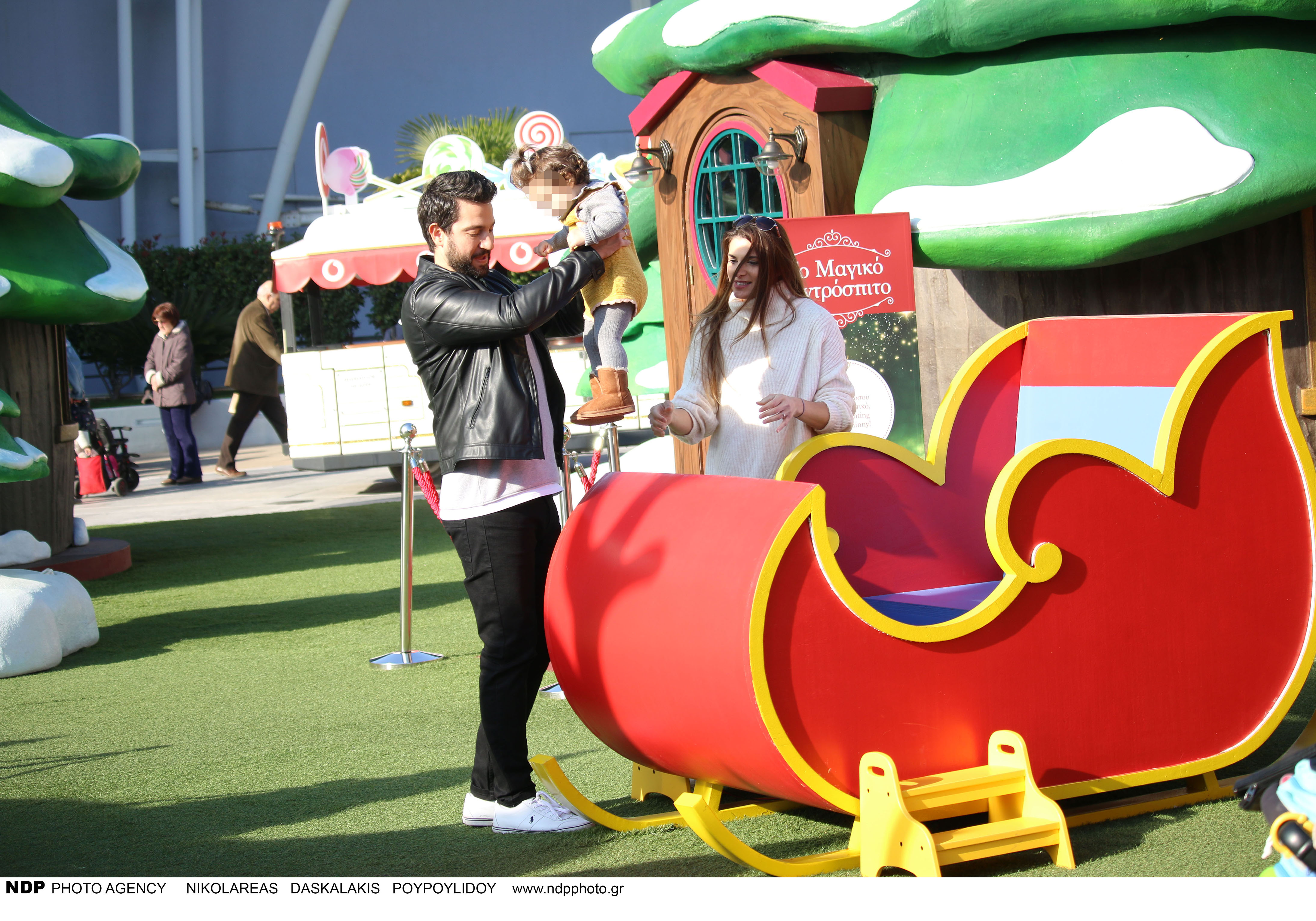 Ο σεφ που έχει γίνει γνωστός από την εκπομπή της Ελένης Μενεγάκη απολαμβάνει οικογενειακές στιγμές με την γυναίκα του Δήμητρα και την κόρη τους.Ο φωτογραφικός φακός τους συνέλαβε να παίζουν στο Χριστουγεννιάτικα στολισμένο Golden Hall.