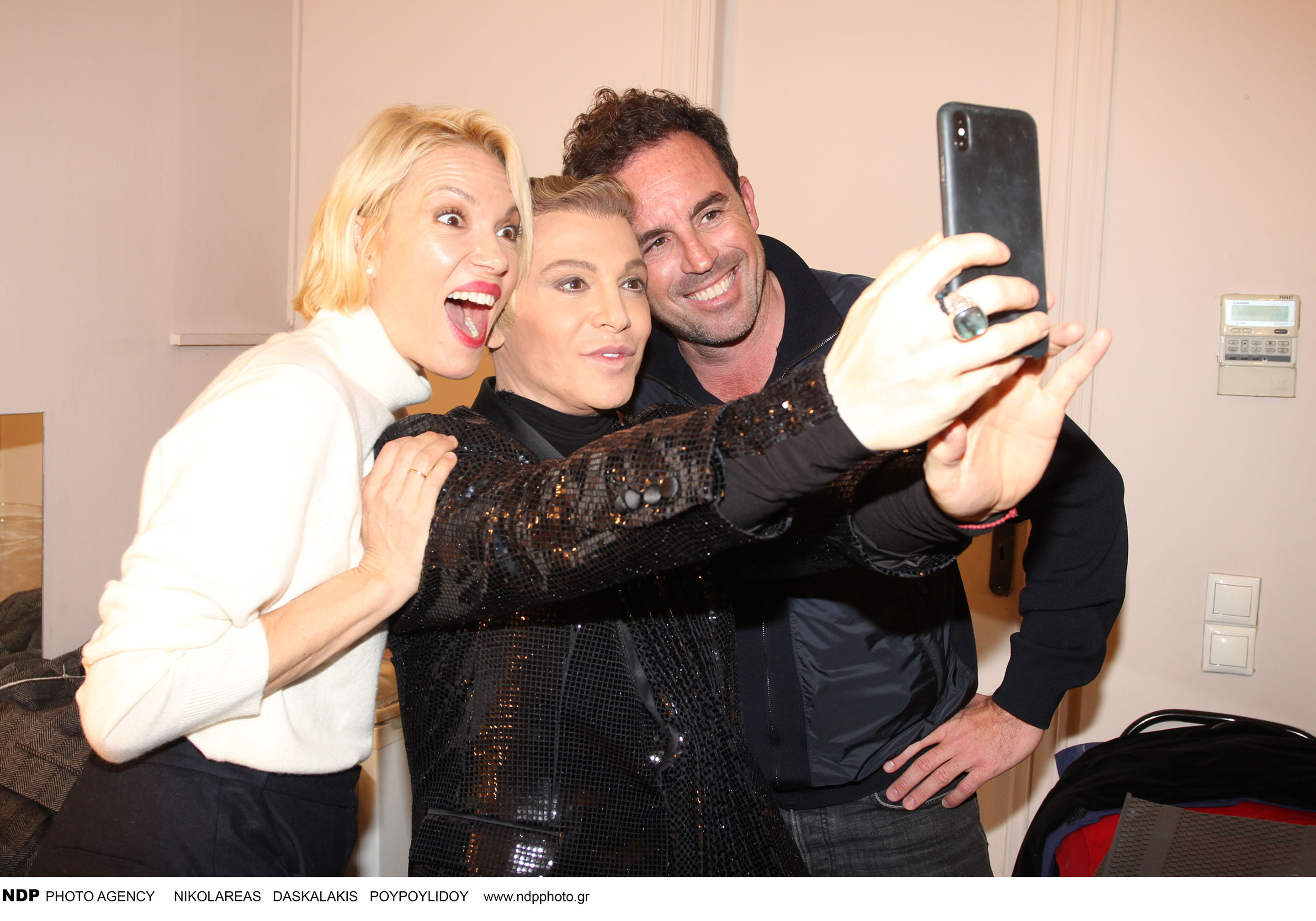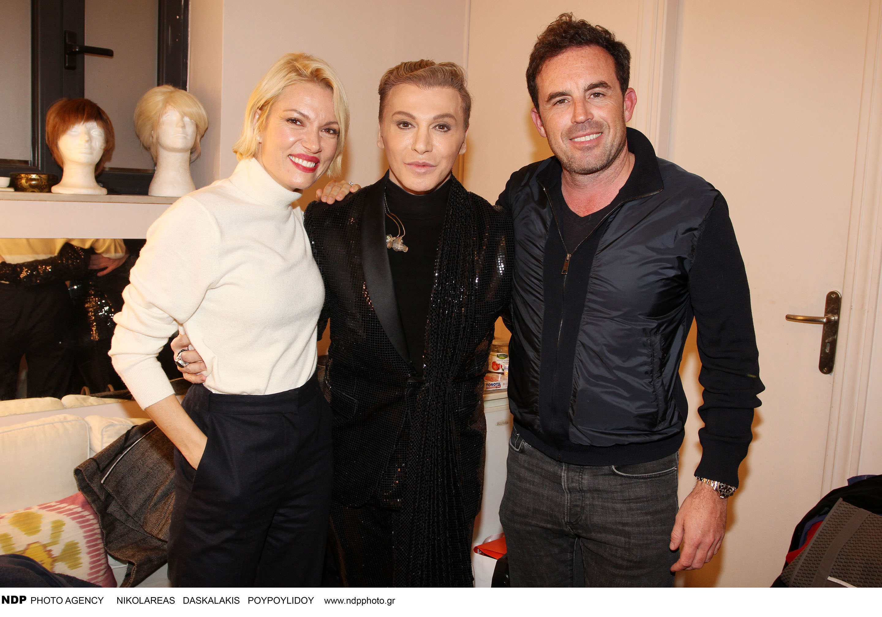 Η Βίκυ Καγιά και ο Ηλίας Κρασσάς με τον Τάκη Ζαχαράτο, στο καμαρίνι του